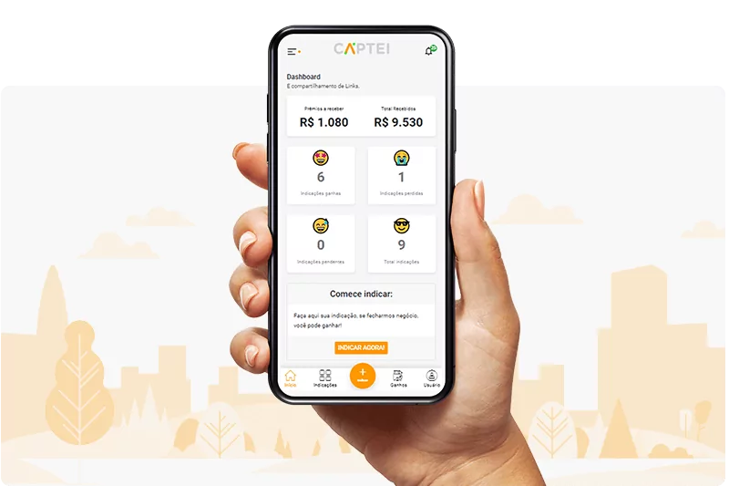 Melhore a eficiência e produtividade da sua imobiliária. Aumente suas captações, gerencie indicações e analise métricas e resultados.